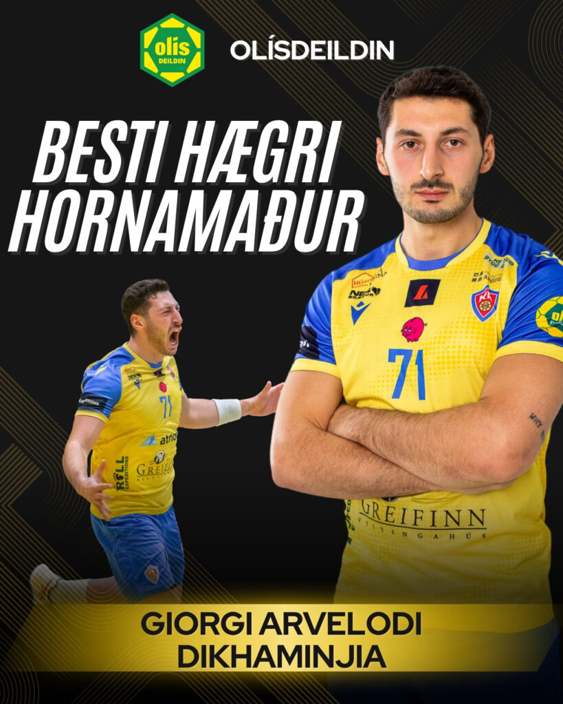 ისლანდიის პრემიერ ლიგიდან (Úrvalsdeild karla) სასიხარულო ამბავი მოვიდა. “აკიურეირის” ქართველი ლეგიონერი, გიორგი დიხამინჯია სეზონის სიმბოლურ გუნდში შეიყვანეს, როგორც კუთხის საუკეთესო მარჯვენა (RW) მოთამაშე.