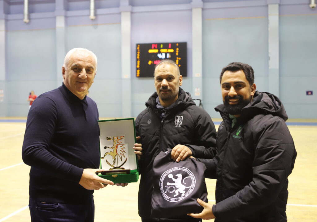 მატჩის დასრულების შემდეგ, საქართველოს ხელბურთის ფედერაციის პრეზიდენტმა ვახტანგ მეიფარიანმა და სტუმრებმა სიმბოლური საჩუქრები გაცვალეს